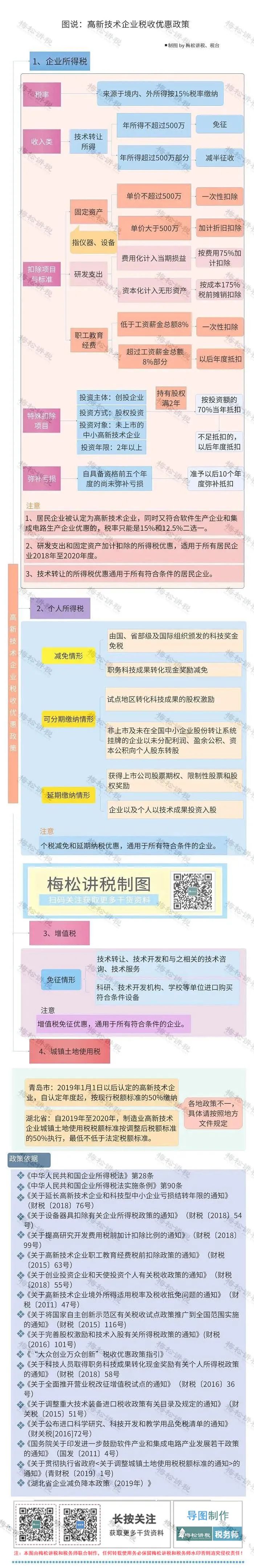 認(rèn)定國家高新技術(shù)企業(yè)后,不僅可以享受地方獎(jiǎng)金獎(jiǎng)勵(lì)、申請政府專項(xiàng)資金、吸引人才,還是企業(yè)創(chuàng)業(yè)板、新三板上市的一個(gè)重要條件。最重要的是可以享受稅收減免、資產(chǎn)加速折舊等政策,具體我們準(zhǔn)備了思維導(dǎo)圖,讓大家一圖掌握高新技術(shù)企業(yè)可以享受的各種優(yōu)惠政策。