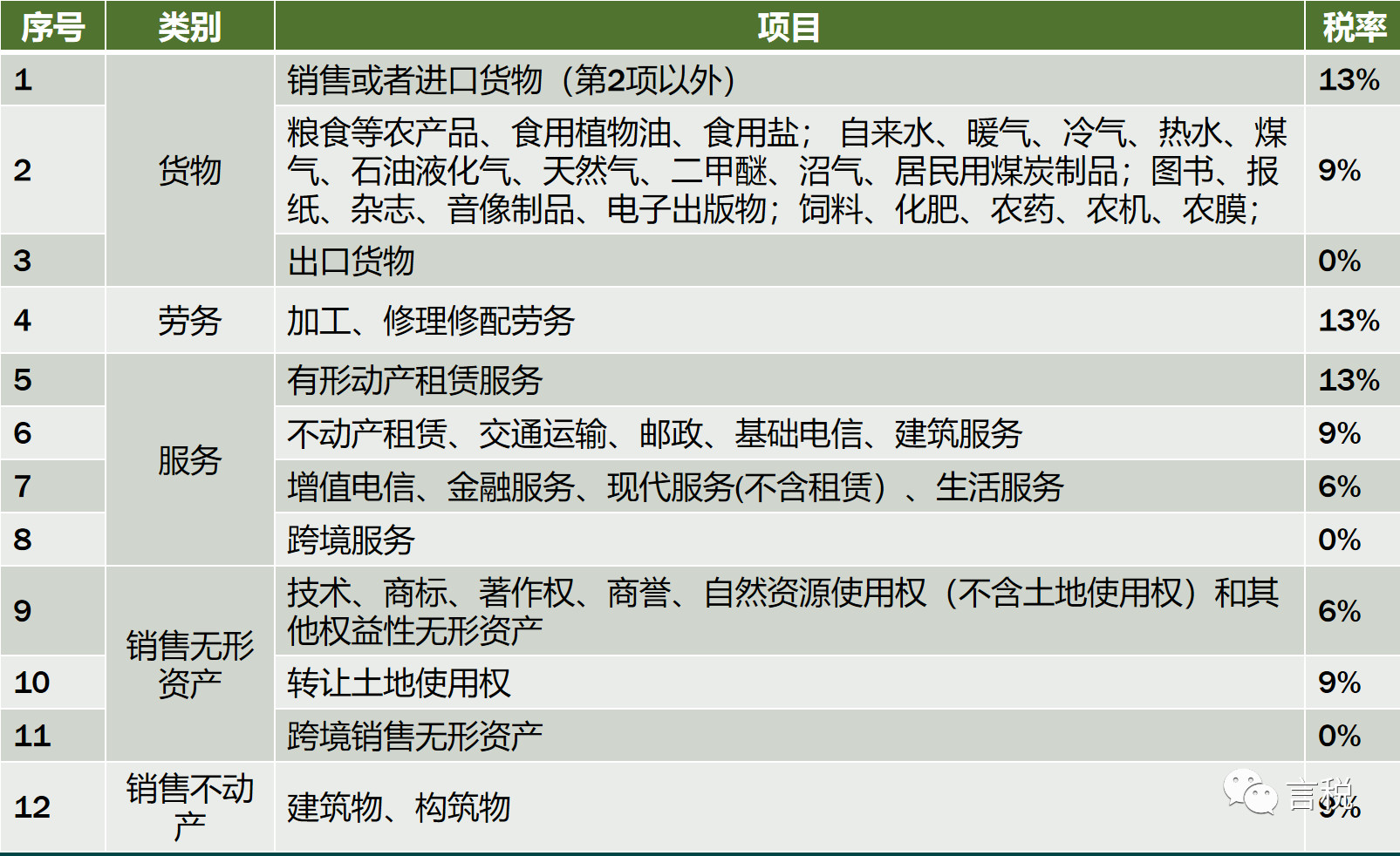 1銷售或者進(jìn)口貨物(除9-12項(xiàng)外)13%