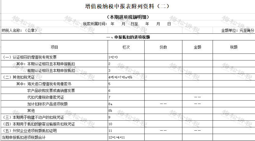 進(jìn)項(xiàng)稅抵扣的終極目的是落實(shí)到申報(bào)表上,數(shù)據(jù)主要填列在附表二的相關(guān)行次中。