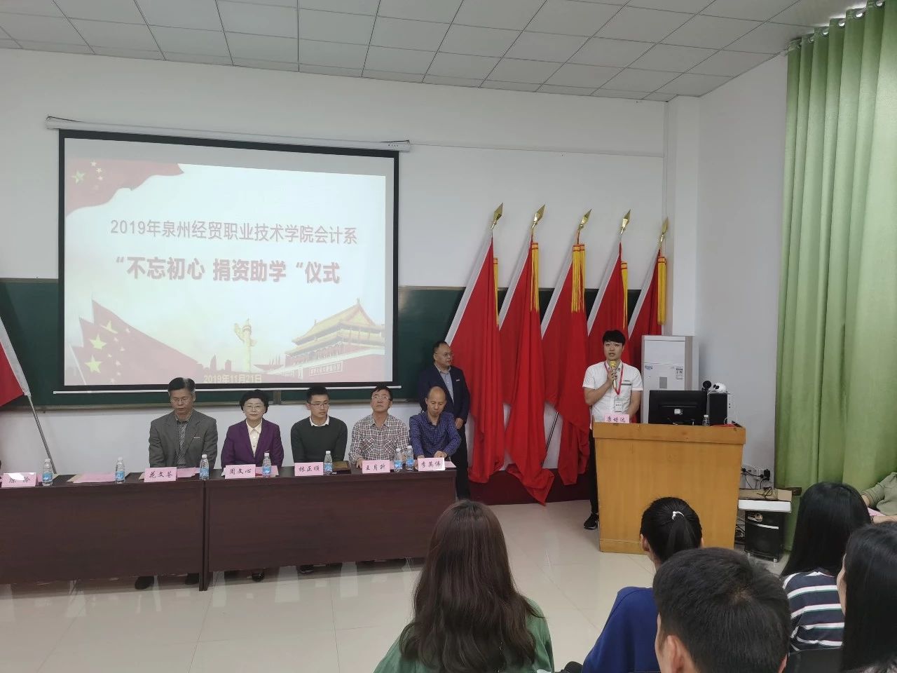 每一種色彩都應(yīng)該熱情盛開,每一棵幼苗都應(yīng)該被甘霖灌溉,為了幫助貧困大學(xué)生順利步入校園,實現(xiàn)人生夢想。2019年11月21日,福建順鑫財務(wù)集團攜手泉州經(jīng)貿(mào)職業(yè)技術(shù)學(xué)院舉辦了一場捐資助學(xué)活動,順鑫財務(wù)集團副總經(jīng)理康培達同志與人力資源部經(jīng)理陳鈴女士代表順鑫集團參加了此次捐資助學(xué)活動。