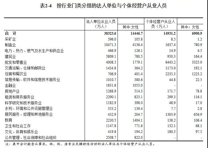 從業(yè)人員方面,2018年末,全國第二產業(yè)和第三產業(yè)法人單位從業(yè)人員38323.6萬人,比2013年末增加2721.3萬人,增長7.6%,其中女性從業(yè)人員14446.7萬人,占37.7%。